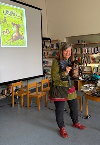 Bettina Obrecht, die Schriftstellerin war bei uns am Geitelplatz zu Besuch und hat uns aus ihrem Buch Grompel – Chaos im Anmarsch vorgelesen. Es war sehr schön. Sie hatte ein gefilztes Grompel dabei.